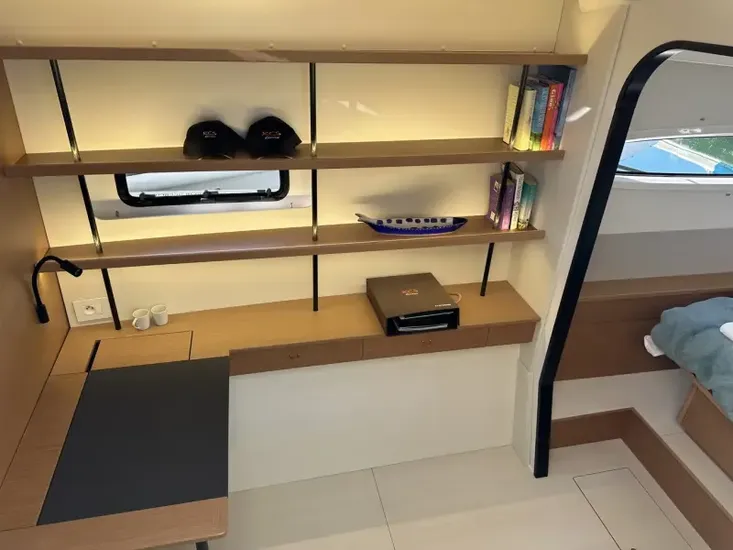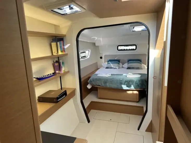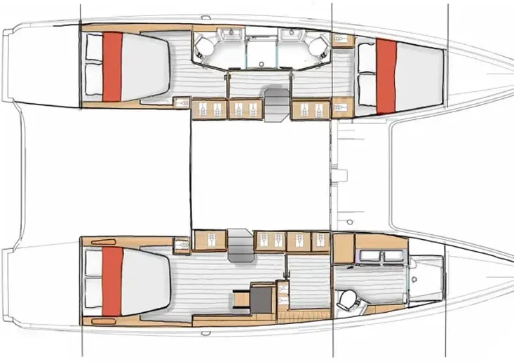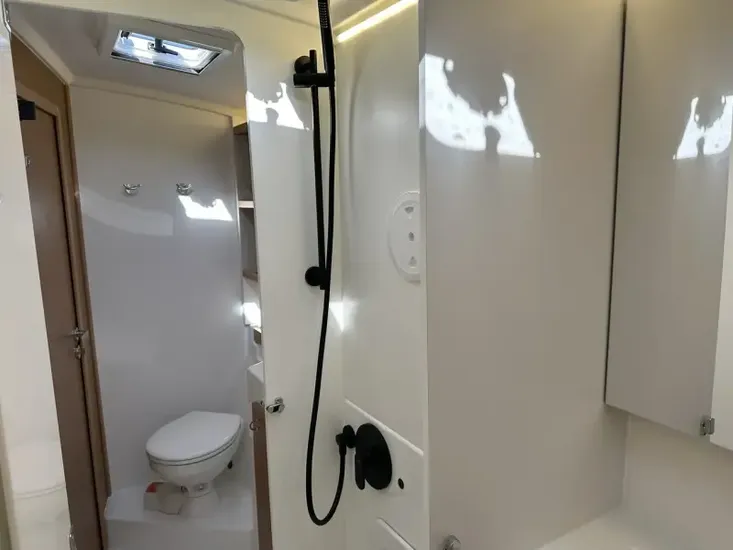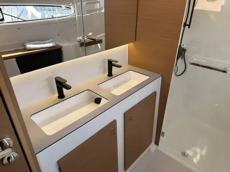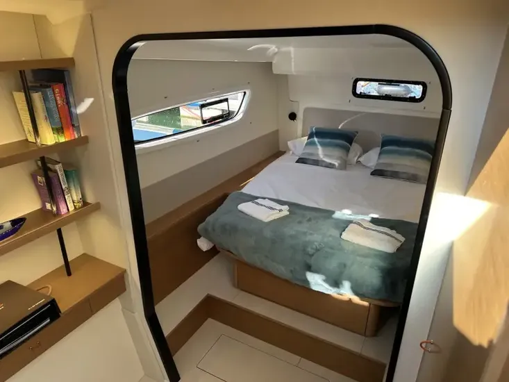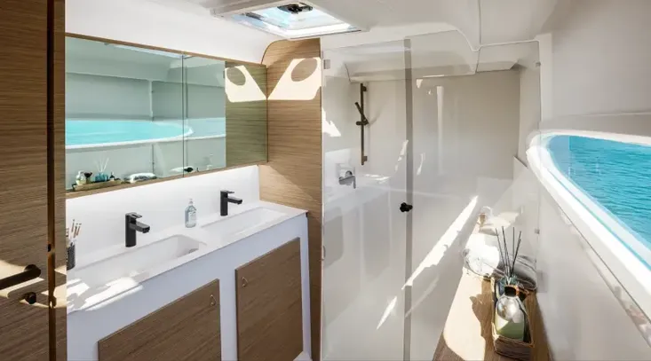 - 1 x owners cabin in starboard hull with ensuite heads and shower