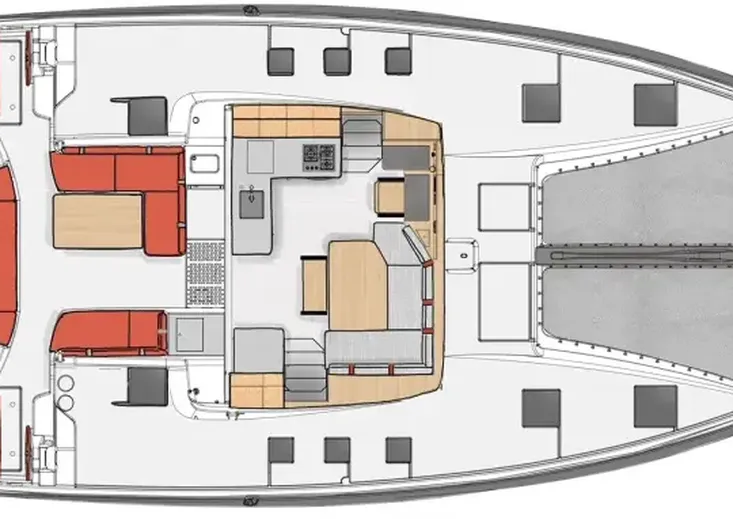 The Excess concept corresponds to a certain idea of sailing: exalted, free, daring. The Excess 13 takes this idea a step further. Designed by a team of passionate sailors, this catamaran is the fruit of a long reflection on the pleasure of sailing, the pleasure of living aboard, and the pleasure of enjoying the playground that extends around the boat.