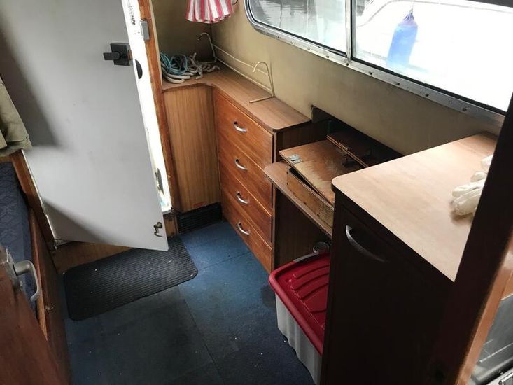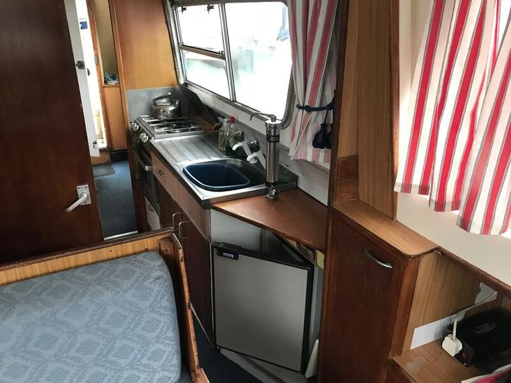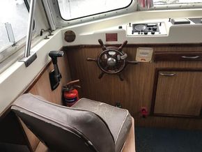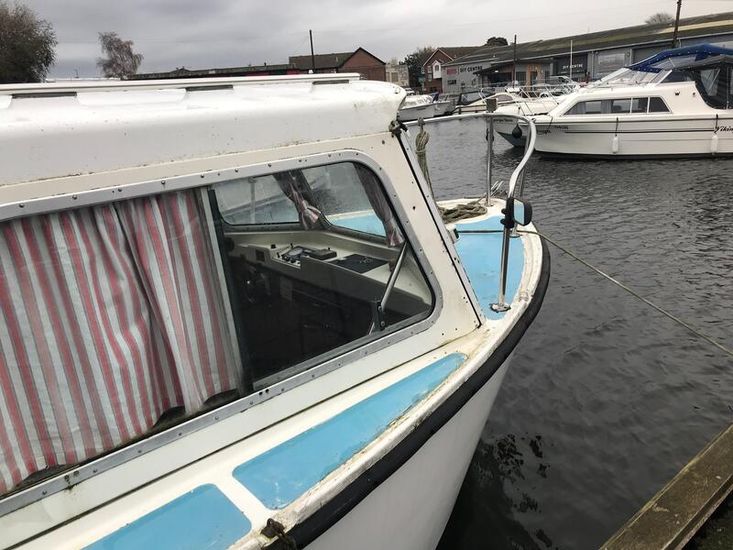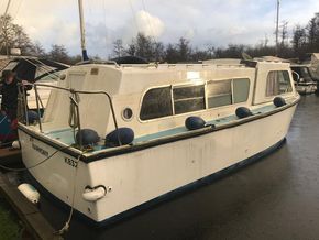 This Hampton Safari has been in the same ownership for 20 years and has a comprehensive service history dating back even further. She has been re engined with a Nanni 28hp diesel engine giving reliable economical cruising. She can sleep up to four people in her two cabins and has a galley running along the port side with a recent new cooker. While she would benefit from some cosmetic improvements to the interior, her modern engine/gearbox and comprehensive service history make her a good buy. She comes with a current Broads licence and a BSC until 2027. Early viewing recommended.