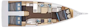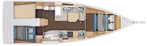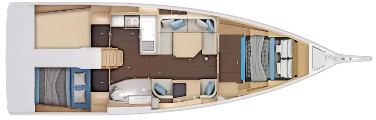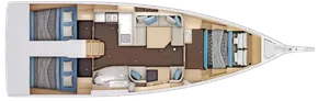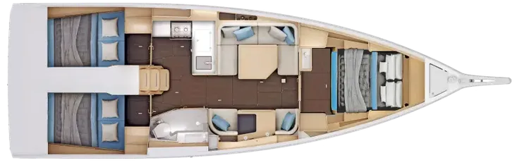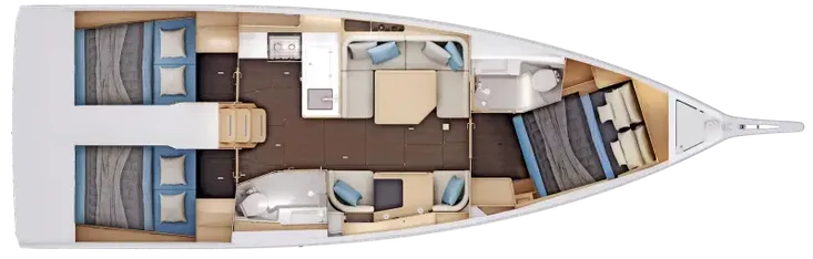 - Completely reimagined interior layout, featuring an L-shaped galley and a unique "two-way" chart table for improved functionality.