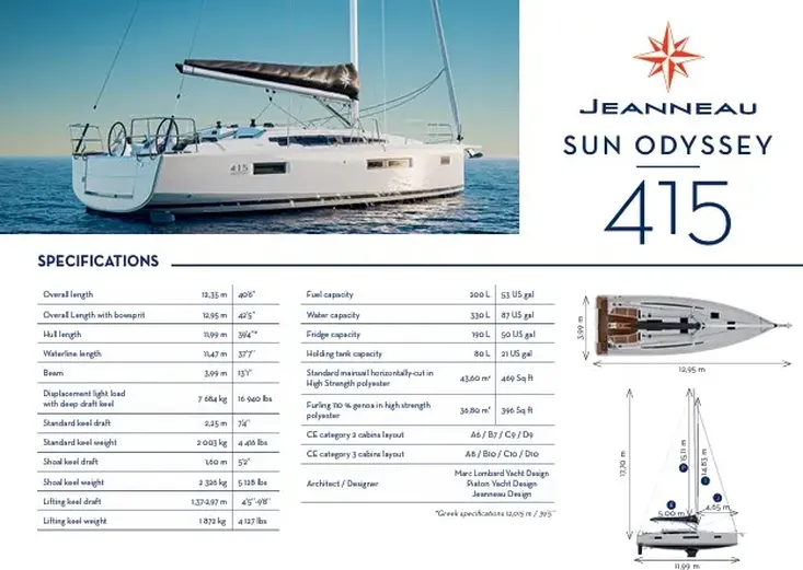 Key highlights of the Sun Odyssey 415 include: