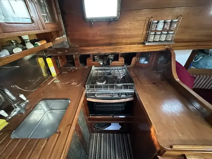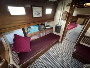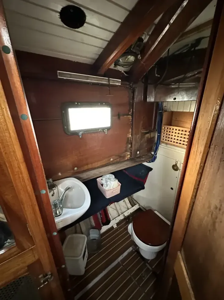 46 feet length overall yet this boat does not feel large or difficult to manage. She is much more compact when viewed in person. Perfect for a couple to cruise.