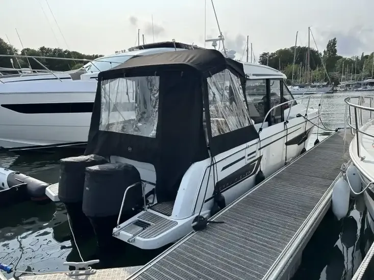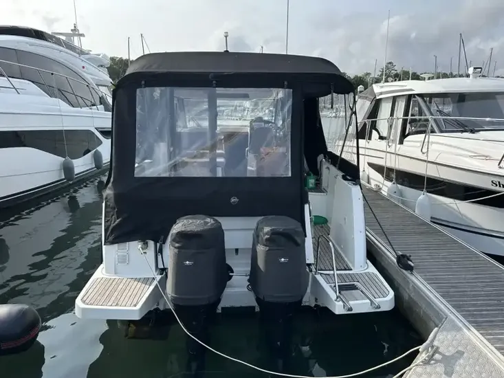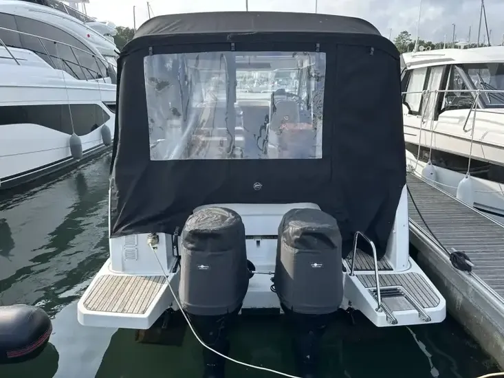 It features twin Suzuki DF175APX 175hp outboard engines with fly-by-wire controls and a very good service history. Good specification including many desirable extras such as bow thruster, cockpit covers, teak decking and